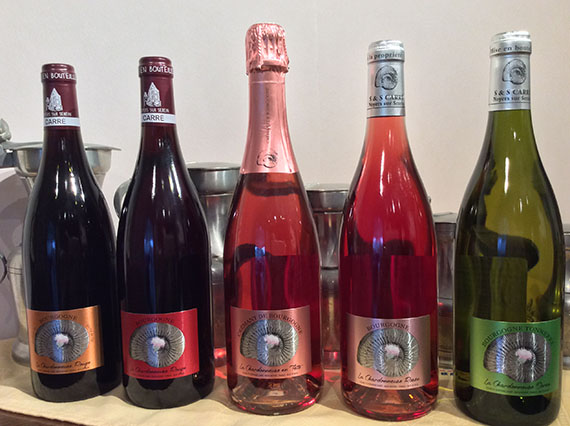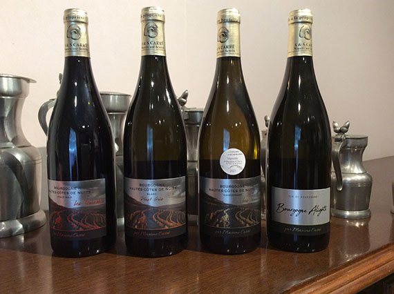 Les noms des climats (terrains) sont pour le Chablis : "sur la forêt et pisse-loup" et pour les Bourgogne "La Chardonneuse".